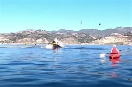 Two kayakers off the California coast got up close and personal with a humpback whale…