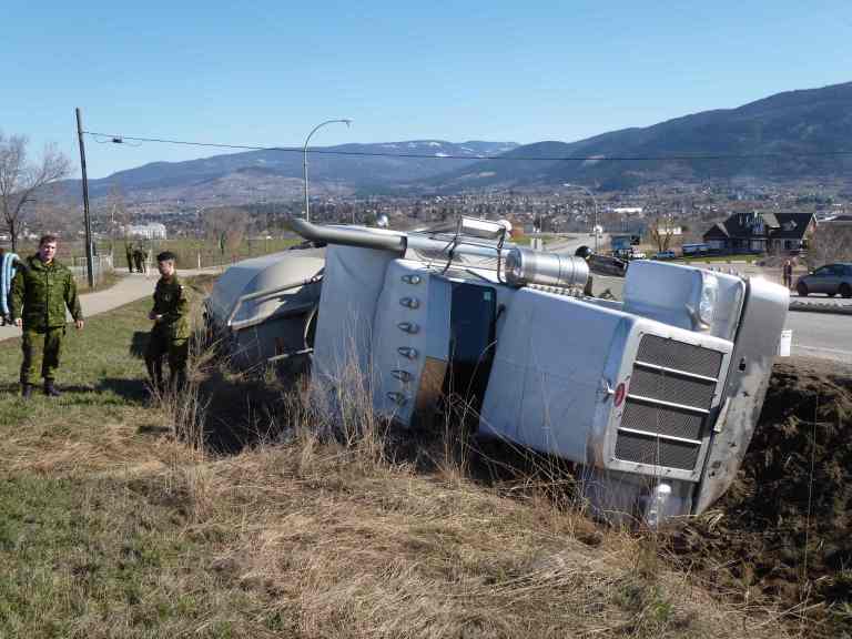An out-of-town truck driver is without injury after crashing a fully loaded semi on Hwy. 97 near the Vernon Army Camp. Deputy fire chief Lawrie Skolrood said the fully loaded semi tipped into the ditch Sunday morning. The driver had been travelling south. When crews arrived around 10:30 a.m. the 62-year-old driver from Barhead, Alberta...