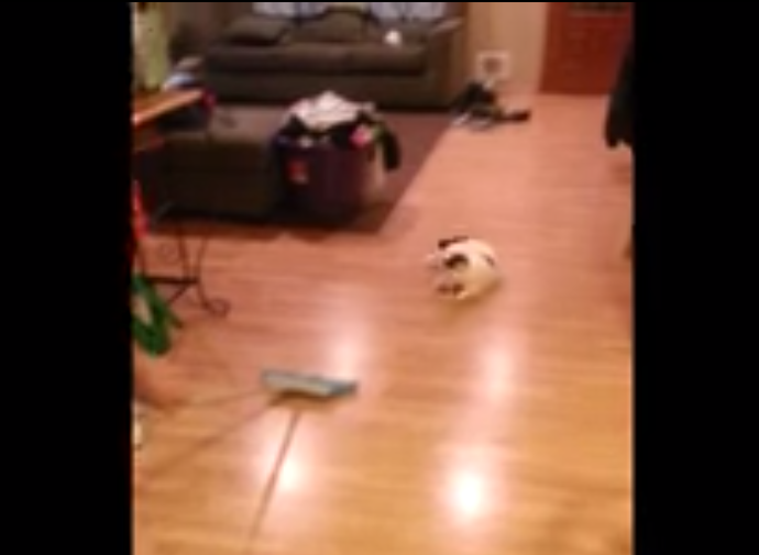 This cat keeps itself entertained while its owner tries to sweep the floor. Take a look at how chore time becomes play time on trending now. Then watch Jimmy Kimmel get pranked by Rihanna for April Fools' Day while Ludacris brags about his 1993 Acura on Conan O'Brien. %%embed1%% %%embed2%% %%embed3%%