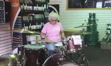 When you're hanging out in music store, there's always someone taking one of the instruments for test drive. This grandma decided it was time to show off her skills on the skins. %%Video1%%