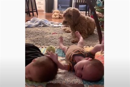 The goldendoodle, a cross between a golden retriever and a poodle, just wants the new…