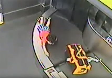 A two-year-old boy scrambled onto the luggage conveyor belt and took a wild ride through…