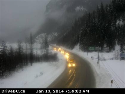 THOMPSON-OKANAGAN — Those travelling east on Highway 1 may be better off making other plans today. Part of the highway is closed because of high avalanche risk, delays are expected in another section for avalanche control and a good portion is under a special weather statement as rain and snow lead to a travel advisory...