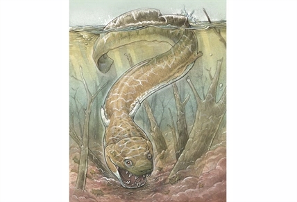 WASHINGTON (AP) — Scientists have revealed fossils of a giant salamanderlike beast with sharp fangs…