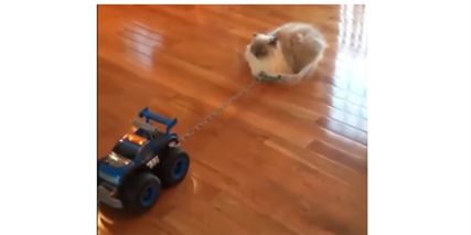 This cat is being pulled around by an RC car and doesn't seem to care…