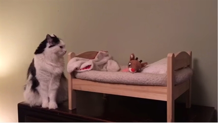 This cat has it made when it comes to bedtime. She has her own bed,…