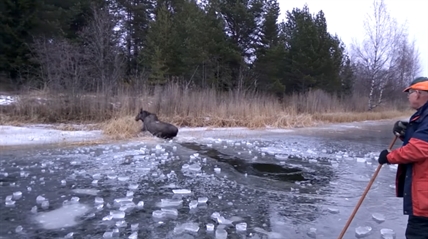 A moose trapped in a frozen lake was able to escape thanks to a few…
