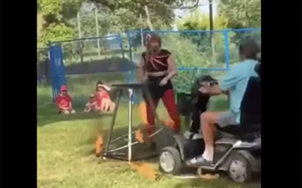 It starts as a casual fire dancing performance. But, when one of the performer's hula…