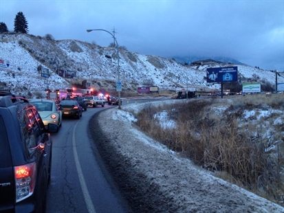 PENTICTON - An overturned logging truck on Highway 97 just north of the city is slowing down traffic this morning. The accident happened around 7 a.m. Police, fire and ambulance are on scene. Southbound traffic is moving slowly through the scene while northbound traffic is being sent on a detour through West Bench.