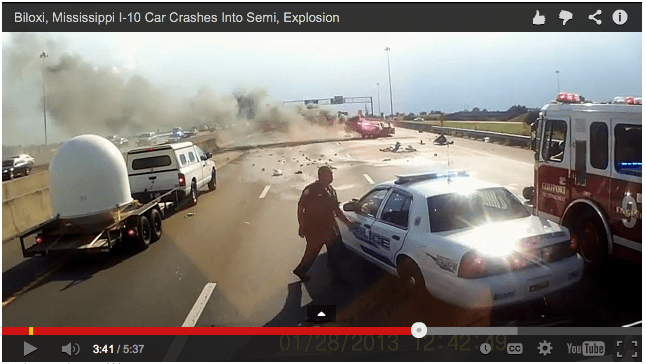 A fiery crash in Biloxi Mississipi was caught on dash-cam by a trucker who responded in a way that many are calling heroic, but we'll let the video speak for itself. Though the video is dated January 28, 2013, the accident actually happened August 11, 2014. %%Embed1%% LINKS: Dash-cam captures truck driver saving two from...