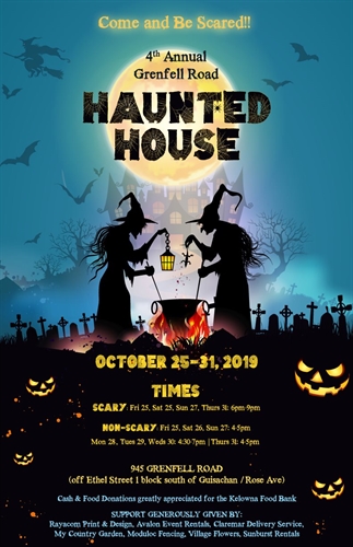 Time to be scared again!! Haunted house at 945 Grenfell Rd. raising cash & food for the local foodbank.
