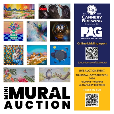 <p>Join us for the fourth annual mini mural fundraising auction, brought to you by the Penticton Art Gallery and Cannery Brewing. <br />This is your opportunity to own one of the amazing murals that have been on display at Cannery Brewing since March. <br />The Mini Mural Auction features ten breathtaking paintings created by local talents: <br />– Moozhan Ahmadzadegan <br />– Glenn Churchill <br />– Melissa Dinwoodie <br />– Emily Fitzowich <br />– Jolene Mackie <br />– Jenny Lewis <br />– Diana Palmer <br />– Jennifer Robinson <br />– Peggy Stel <br />– Megan Traicheff</p>