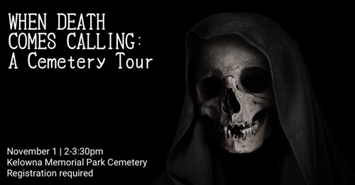 Are you brave enough to walk amongst the dead? Join us for an all-new tour and hear true stories of Kelowna’s more peculiar passings. Prepare for a fright, and remember…death comes for us all!This is an outdoor event. Dress for chills. Be prepared for uneven ground and tripping hazards.Proceeds from the tour support lifelong learning in your community.For more information, please contact:Jen at 250.868.4836education@kelownamuseums.ca