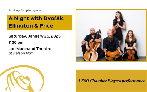 Revel in the timeless melodies of Dvorák, the soul-stirring jazz of Ellington, and the groundbreaking harmonies of Price, performed by the exquisite Black Dog String Quartet.Tickets are $43 for Adults, $15 for Youth (under 19), and $20 for KSOundcheck members.