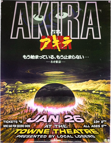 <p>8pm 19+ Screening with wine bar: https://www.thetowne.ca/movie/akira-subtitled-19–screeningIconic and game-changing, Akira is the definitive anime masterpiece! Katsuhiro Otomo’s landmark cyberpunk classic obliterated the boundaries of Japanese animation and forced the world to look into the future. Akira’s arrival shattered traditional thinking, creating space for movies like The Matrix to be dreamed into brutal reality.Neo-Tokyo, 2019. The city is being rebuilt post World War III when two high school dropouts, Kaneda and Tetsuo stumble across a secret government project to develop a new weapon – telekinetic humans. After Tetsuo is captured by the military and experimented on, he gains psychic abilities and learns about the existence of the project’s most powerful subject, Akira. Both dangerous and destructive, Kaneda must take it upon himself to stop both Tetsuo and Akira before things get out of control and the city is destroyed once again.</p>