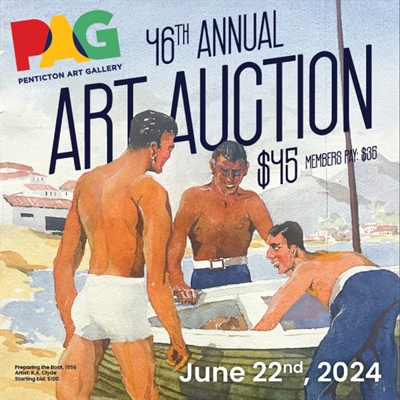 <p>LIVE ART AUCTION. Bid on exclusive pieces like “Double Elvis after Andy Warhol (Sunday B Morning Edition)”, an untitled work by David T. Alexander RCA valued at $12,500, experiences and gift baskets from local businesses.50/50 Raffle: https://www.rafflebox.ca/raffle/pag2024 Tickets are available for purchase online now. AND Bid on Auction Items on-line until June 21st. https://www.32auctions.com/pag2024Dinner and drinks are included in your $45 ticket price.($35 for members). Caribbean-inspired cuisine by City Eats, fine wines from Gold Hills and craft beers from Cannery Brewing.https://www.pentictonartgallery.com/shop-online/p/art-auction-ticket-2024</p>
