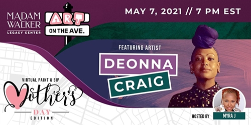 Join us for “Art on the Ave: Mother’s Day Edition,” a free virtual paint-and-sip hosted by the Madam Walker Legacy Center on May 7, 2021 at 7pm EST. All are welcome to enjoy a fun night of painting with your Mom!!!Our featured guests for the evening will be the women of Alpha Kappa Alpha Sorority, Incorporated.Learn more about upcoming free events from the Madam Walker Legacy Center on our website: www.madamwalkerlegacycenter.comThis event is free, but donations are always welcome! Contributions will benefit the MWLC Women’s Entrepreneur Grant & Training Fund.
