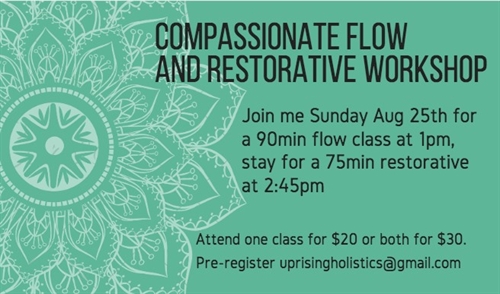 My first workshop back in Summerland after my move will be August 25th! This will be held at Summerland Women’s Fitness.Come for one class for $20, or attend both for $30. Pre-registration is required as space is limited. Please connect via email at uprisingholistics@gmail.com. At 1pm I will be offering a 90minute compassionate flow class. My usual style of movement, holds, balance and challenge. Open for all levels. We will take a 15 minute break (or extended Savasana) and then at 2:45pm I will be offering a 75 minute Restorative class. Attend both for a 3 hour mini retreat!Hope to see you there!