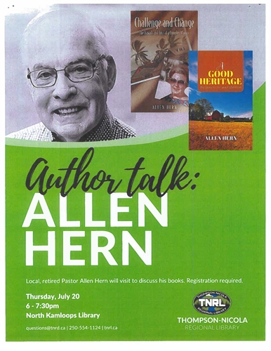 <p>Local, retired Pastor Allen Hern will visit to discuss his books. Registration required</p>