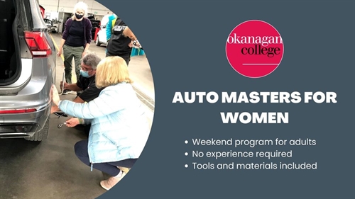 <p>Gain hands-on experience working on cars while learning the basics of car maintenance. Practical lessons include learning how to change a tire, the purpose of coolant, and what to touch and not touch under the hood of a car.<br />Note: Closed-toe shoes and long pants are required in the shop areas. Participants with long hair should bring elastics to tie back their hair.<br />Kelowna campus<br />October 1 from 8:30 a.m. – 3:30 p.m.<br />$156.45 per person<br />Tickets<br />www.okanagan.bc.ca/cs/course</p>