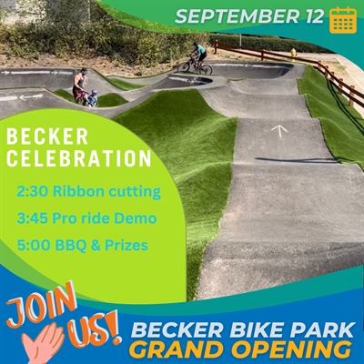 <p>September has arrived! Join us for the grand opening of Becker Bike Park with a Pro Rider Demo and BBQ, Thursday September 12th. <br />Watch pro riders, Bas Van Steenbergen, Brayden Barrett-Hay, Hayden Zablotny and Tayte Proulx-Royds. <br /> Please register in advance so we can plan for the right number of burgers. <br />Ride from school or from work! <br /> 2:30pm: Ribbon Cutting Ceremony with City of Vernon <br /> 3:45pm: Local Pro Dirt Jump and Pumptrack demo <br />5:00pm: BBQ (and prizes!) <br />6:30pm: Wrap up</p>