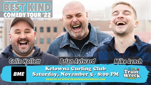 <p>The By’s from Newfoundland return to the Kelowna Curling Club to wrap up their cross-Canada Tour on Saturday, November 5. The Best Kind Comedy Tour has become one of Canada’s biggest independent comedy tours with 3 coast to coast tours and over 60 shows under its belt. They’ve sold over 15,000 tickets and have built a great following across the country.<br />Tickets<br />www.showpass.com/best-kind-comedy-tour-kelowna</p>