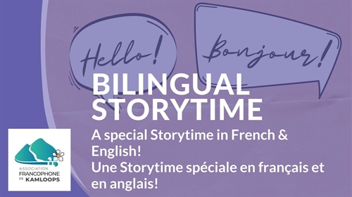 This special Storytime in French & English features guest readers from the Association Francophone de Kamloops.Cette Storytime spéciale en français et en anglais met en vedette des lecteurs invités de l’Association Francophone de Kamloops.Ages 3-5. Available weekly on Facebook