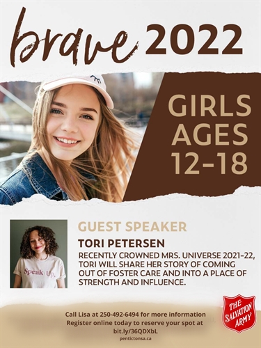 Brave 2022 Event for teen girls ages 12-18 years. Held on May 7, 2022 at 2469 South Main Street from 10am – 3pm. Cost is free. Register for a spot at bit.ly/36QDXbL