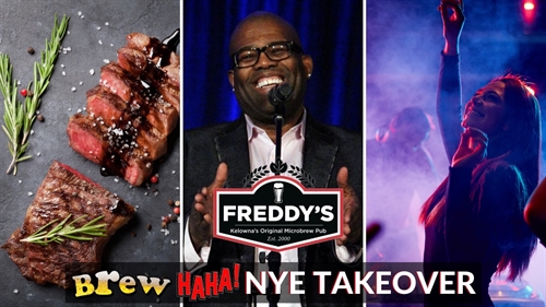 This year the New Years Eve Event will take over the whole Brewpub, with a cocktail hour to kick things off that will include a special Cask, Punch Station and Food Stations for you to enjoy on the pub side. Then we will move the show into the lounge for the comedy show featuring Darryl Lenox, one of the top comedians in North America, to help you celebrate the arrival of 2020! . Once your cheeks are sore from laughing the DJ will take over and help you dance in the New Year on the Pub side with some complimentary champagne at midnight! Doors at 6:30pm Food Served 7:00pm Comedy at 8:30pm DJ & Dancing to follow Darryl Lenox Vancouver, BC Lenox has been performing in comedy clubs throughout the United States and Canada since the early 1990s. Some of his career accomplishments include opening for Chuck Berry and Maxi Priest, Winner of Best New Play at Vancouver Fringe Festival, and Winner of Seattle Comedy Competition. He has appeared on the BET ‘s ComicView, Comedy Central’s Jamie Foxx’s Laffa Polooza, and Live at Gotham. Lenox’s comedy special “Blind Ambition” appeared on Starz in November 2012, and continues to be featured on their channel multiple times a month. After his success on Starz, Lenox caught the eye of late night television and was featured on Conan O’brien on February 7, 2013. In addition to touring comedy clubs, Lenox has been featured on Sirius XM ‘s Raw Dog Comed and Marc Maron’s WTF Podcast. Career Highlights A&E’s Evening at the Improv BET’s Comic View Best of BET’s Comic View Special Best of Just For Laughs Comedy Festival New Year’s Eve Special Comedy Central Jamie Foxx’s Laffa Polooza Comedy Central Live at Gotham “Conan O’Brien Featured Comedian “Marc Maron WTF Podcast Featured Comedian Montreal JFL Special HBO Comedy Arts Festival Boston Comedy Festival Chicago Comedy Festival Vancouver Comedy Festival Winner of Seattle Comedy Competition Winner of Best New Play at Vancouver Fringe Festival Food Menu for the evening Chef Stations Smoked Salmon Rillette – Chef made smoked salmon rillette, horseradish Chantilly cream, capers, fresh dill, crispy malted dough 5 Spice Grilled Flank Steak – 5 spice & soy marinated flank steak, cooked rare over charcoal, cucumber vermicelli, carrot threads, cilantro, green onion threads, toasted sesame seeds, orange blueberry gastrique Grazing Station – Citrus Poached Prawns & cocktail sauce – Confit garlic & herb dip – Roasted red pepper & olive tapenade – Marinated artichokes & roasted tomatoes – Burnt orange & star anise green beans – Lemon & Harkrider honey flat bread – Soy pickled mushrooms, pickled onions, cinnamon pickled granny smith apples, pickled cucumbers – Roasted carrots – Celery, cucumbers – Pitas, tortilla chips, baguette Hor D’oeuvrees Station Baked Mushrooms – Whole button mushrooms, bacon bits, garlic, Asiago, herb cream sauce Spinach & Feta Pastry – Spinach & feta stuffed pastry, in house tzatziki, chili brown butter Caprese Focaccia – Roasted roma tomatoes, mozza, basil puree, garlic focaccia, balsamic reduction Melanzane & Goat Cheese – Roasted eggplant puree, whipped goat cheese, confit garlic, unsweetened tart shell Baked Artichoke Hearts – Artichoke hearts, red sauce, mozza Dessert Station Sweets – An assortment of decadent bite size cakes, cheesecakes, miniature donuts, and mousse cakes Butterscotch Kamora Pumpkin Pie – Butterscotch and Kamora whipped pumpkin filling, graham cracker crust, streusel topping, and cinnamon vanilla whipped cream Individual Strawberry Shortbread – Shortbread cookie, vanilla pudding, strawberry compote, mint garnish