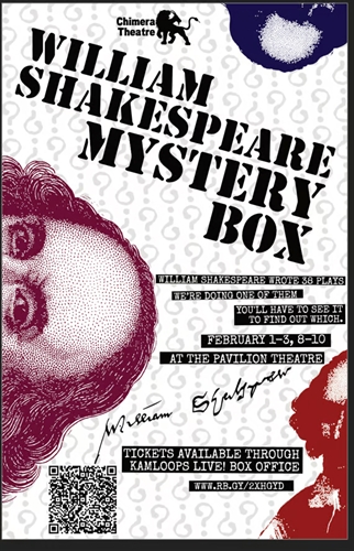 William Shakespeare wrote Thirty-Eight plays. Chimera Theatre is doing one of them. But which one? You’ll have to see it to find out! Will there be murder? Romance? Laughs? Yes to at least two of those! Yes, this is real. It is a real Shakespeare script from the real canon of real plays. You’re just going to be surprised about which one. And when you do find out, remember shhhhhhh! It’s a secret! This unique production invites you to throw caution to the wind and place your trust in the hands of the Bard by coming to a play without even a hint of which play you’ll be seeing. Well there’s one hint – it’ll be a lot of fun! Learn more at chimeratheatre.com