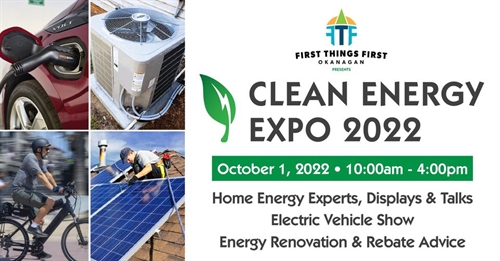 <p>First Things First Okanagan is organizing its 4th Alternate Energy Symposium.<br />The 2022 “Clean Energy Expo” will be at the Penticton Lakeside Resort and Conference Centre, Saturday, October 1st from 10 a.m. to 4 p.m. Learn about home energy audits, renovation rebates, electric vehicles, solar installations, heat pumps, and more. Presentations on alternative energy ideas every 30 minutes. $5 Suggested Donation <br />https://www.firstthingsfirstokanagan.com/cleanenergyexpo2022 Email for more info</p>