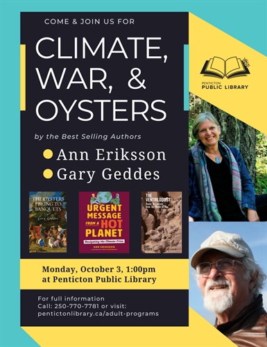 The Penticton Library is excited to be hosting these two fantastic, British Columbia authors, and invite you to join us for their talk.