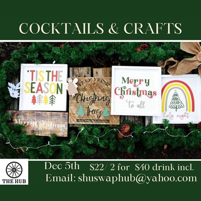 Join us for a fun-filled evening of creativity and relaxation for Cocktails and Crafts at the Hub! Get your craft on while sipping delicious cocktails and enjoying the beautiful surroundings of the North Shuswap.
