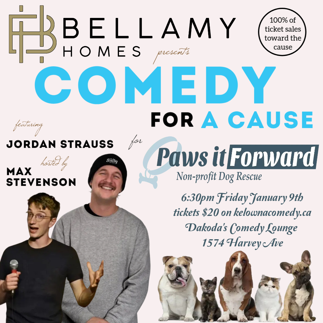 This special event pairs top-tier stand-up comedy with a cause that truly matters. 100% of ticket sales will go directly to Paws It Forward, a dedicated local non-profit that rescues, rehabilitates, and rehomes dogs in need—from overcrowded shelters and difficult situations to remote communities with limited access to care. Every ticket sold helps give a deserving dog a second chance at a safe, loving forever home.