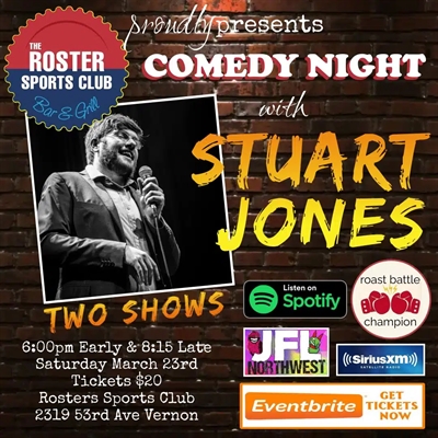 Join us at the Roster Sports Club Bar & Grill for Comedy Night with Stuart Jones.