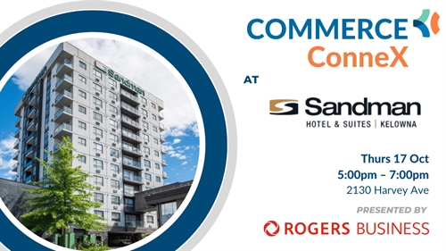 <p>We are thrilled to announce our October Commerce ConneX, brought to you by Rogers Business. <br />Join us at Sandman Hotel and & Suites Kelowna on Thursday October 17, 2024. This popular business community event often sells out, so register early.</p>