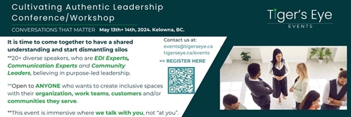 <p>Cultivating Authentic Leadership Conference: Conversations that MatterDo you want to attract, nourish and retain diverse talent by creating cultures of belonging and inclusion?We are all leaders and have the ability to support and drive change. We continue to operate with an “us vs. them” mentality despite the fact that we know this does not create inclusion. Therefore this is a time to come together to have a shared understanding and start dismantling silos and integrating Equity, Diversity and Inclusion practices into everyday ways of being.Join the conversation with 20 diverse speakers from across Canada who are experts in Equity, Diversity and Inclusion (EDI), Communications and/or Building Community. Open to ANYONE wanting to create more INCLUSIVE SPACES with their organization, team and/or the communities they serve.WHY: It is important for “all” of us to come together to create transformational changes in our community.WHAT: During this two day immersive learning conference we will identify ways to be comfortable in “tension” and how to build our inner confidence to support change.WHEN: May 13th & 14th, 2024 8:30 am to 4pm FORMAT: Immersive presentations and workshops. that will include practical takeaways, reflections and experiential learning activities. INCLUDED: Workbook, knowledge from 20 diverse speakers, beverages, snacks and lunch! REGISTER AT cultivatingauthenticleadership.eventbrite.ca TICKET PRICE: Early Bird Corporate/Government: $649 + fees/taxes Business/Entrepreneur/Non-Profit/Community: $299 + fees/taxesLET’S HAVE A CONVERSATION! www.tigerseye.ca/eventsTOPICSDay 1:#1 Understanding Power and Privilege from a NO SHAME, NO BLAME Approach#2 Truth and Reconciliation: Healing from a Heart Centered Approach#3 Panel: Unconscious Bias: We all have them so now what?#4 Pods: 1.Differences: E.D.I 2.Identity/Intersectionality 3. Unconscious Bias#5 Cultivating a Culture of Psychological Safety, Belonging and Allyship#6 Resiliency + Courage = Not Safe for Everyone#7 Panel: Power of Mentoring, Coaching and Sponsorship#8 Pods: 1. Mentoring 2. Allyship vs Activator 3. TBCDAY 2: #1 Panel/Workshop: Diverse Perspectives on Authentic Leadership#2 Authentic Leadership: Lead through Tension to Create Transformative Change#3 Workshop: Navigating Difficult Conversations: Conversational Frameworks#4 Networking Circle Discussions: Ask Me Anything: Circle Discussions from Diverse Lenses#5 Panel: In Between World Views#6 Pods: 1. Decolonizing Leadership 2. Reframing Our Leadership 3. TBD</p>