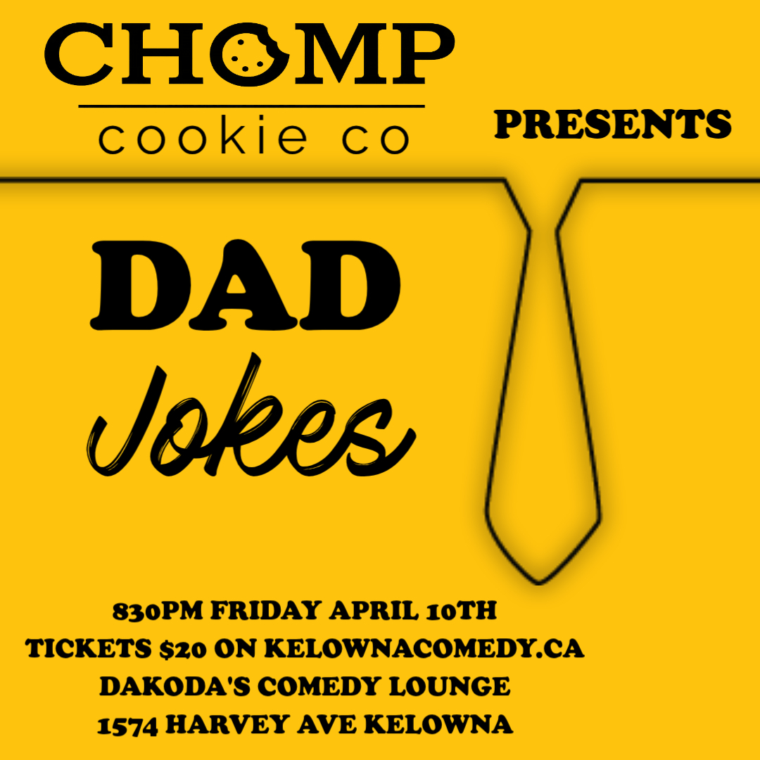 Get ready for a night of laughs that’ll make you groan—in the best way possible.Join us at Dakoda’s Comedy Lounge for Dad Jokes, a comedy showcase featuring Kelowna’s funniest fathers—plus a few “dad-adjacent” comics who’ve earned honorary dad status. These seasoned pros are bringing their best material on parenting, fatherhood fails, and timeless dad wisdom gone hilariously wrong.Expect everything from rapid-fire one-liners to painfully relatable stories, all delivered with maximum charm and minimum shame. It’s wall-to-wall comedy that hits like a perfectly timed dad joke at a backyard barbecue.Leave the kids at home, bring your best eye-roll, and settle in for a night of nonstop laughs.Featuring: Logan BlighOne of Kelowna’s most exciting rising comedy talents, Logan Bligh blends sharp writing, clever storytelling, and a fearless honesty well beyond his years. His relaxed stage presence pulls audiences in, and his punchlines keep them there.Born and raised in the Okanagan, Logan has quickly made a name for himself—winning multiple Comedy Bloodsport events and taking top spot at the Fraser Valley Comedy Competition.Sweetened by Our SponsorProudly sponsored by Chomp Cookie Co., Kelowna’s beloved artisan cookie makers. Known for their massive 6-ounce gourmet cookies—baked fresh daily with premium ingredients and zero restraint—Chomp proves that some things in life are meant to be indulgent.