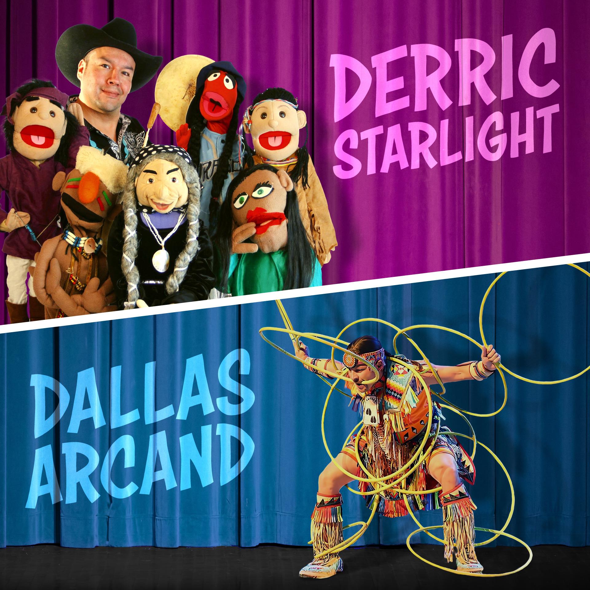 DerRic Starlight is a comedian, puppeteer, writer, and director who has spent his life performing with puppets. From writing plays and filming wrestling shows as a teen to training at The Second City Toronto and Starr Theater in Arizona, DerRic honed his craft across North America. He got his start on North of 60 at 17 and has since spent over 25 years entertaining audiences through live shows and film. A Gemini Award winner for his voice work on Wapos Bay, he recently fulfilled a lifelong dream by training and performing with The Jim Henson Company on Fraggle Rock (Apple TV). Dallas Arcand is now a four-time world champion hoop dancer, multidisciplinary artist, and cultural ambassador from Alexander First Nation, Alberta, Canada. With over 30 years of experience, he has dedicated his life to preserving and promoting Indigenous culture through dance, music, and storytelling. Arcand is a proud Cree from Alexander First Nation in Alberta, Canada, and delivers breathtaking performances that captivate audiences young and old. His intricate choreography, combined with his ability to weave storytelling and cultural symbolism into his dance, set him apart in a highly competitive field. Arcand’s performances demonstrate true agility and perseverance while showcasing the evolution of hoop dance as a dynamic and living Indigenous art form.