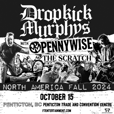 <p>Dropkick Murphys is hitting the road again with punk legends Pennywise and hotly-tipped Dublin rock band The Scratch for a fall North American tour. They are set to ignite the stage at the Penticton Trade and Convention Centre on Tuesday, October 15, 2024. <br />Expect high-octane performances and Celtic rock sounds as Dropkick Murphys take the stage with hits like “I’m Shipping Up to Boston” and “Rose Tattoo.” This is a night of powerful music and electric atmosphere you won’t want to miss. <br />Tickets for the newly announced tour dates can be purchased online at www.ValleyFirstTix.com or in person at the Valley First Box Office at the SOEC. <br />Location: Penticton Trade and Convention Centre <br />Date: Tuesday, October 15, 2024 <br />Doors Open: 6:00 PM <br />Show Time: 7:00 PM</p>
