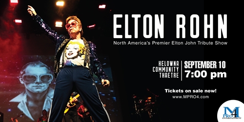 <p>Las Vegas! Atlantic City! All across Canada and the USA! This is the #1 tribute to Elton John…Even the real Elton John band says so.Don’t miss the only Elton John tribute asked to play the Elton John convention in Las Vegas. Davey Johnstone from Elton’s band called Elton Rohn the best Elton tribute show in the world.There is a second Elton John out there…and we’ve got him!Everything is live (no tracks), there is no closer Elton John sounding show anywhere. This band takes tribute to an entirely different level. It absolutely sounds exactly like you are listening to Elton John’s albums in concert. And, on top of that, creating the experience of actually seeing Elton John in concert. Compare them to any other tribute show, Elton Rohn is considered the top Elton tribute show anywhere. It’s a world class show thats coming to the Kelowna Community Theatre!This show is not to be missed!Here is what people are saying…“The stunning musicianship and the array of Elton mannerisms put this remarkable tribute at way up there in the big league”~Paul Russell, Freelance Journalist and contributor to Q107, Legends of Rock, former U.K.“Yes, this is a tribute band, but so right on the money you forget you’re not watching the real thing”~Bob Segarini, Toronto journalist and artist“I film hundreds of bands. This is without question, simply the best tribute act I have ever come across”~Scott McWhinnie , Videographer, Toronto”Elton Rohn is the best tribute I have ever seen in the industry! Elton Rohn is the essence of Elton John”~Debra De Stefano, Entertainment Public Relations, Chicago”Elton Rohn puts on a concert “the next best thing to the real guy”…a truly outstanding tribute to Captain Fantastic. His band is exceptional and it’s easy to think when you’re at the show that Elton himself is there.”~Christopher Randall, V.P. Marketing and Promotion, Zoomer Radio, Toronto”Elton Rohn is absolutely the best Elton John tribute in North America”~Dan Dalpra, Bemus Bay Pops Festival, Bemus Point , NY“Elton Rohn is the best tribute on the planet. Period”~Ruth Ann Scanzillo principal cello , Bemus Bay Pops Orchestra, NYTickets on sale now!Adult – $55Student/Senior – $50Child (12 & under) – $35www.MPRO4.com</p>