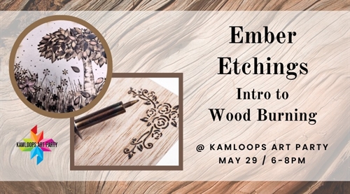 <p>Unleash your inner artist in this exciting wood burning experience! Join our lead wood burning artist, the local and talented Liz Thiessen, for an unforgettable evening of creativity. <br />When: May 29th, 6-8pm <br />Where: Kamloops Art Party <br />Tickets: $49 + GST <br /> What to Expect: <br />Learn the basics of wood burning <br />Dive into creating your first wood-burnt masterpiece <br />Why Attend? <br />Experience the mesmerizing art of pyrography <br />Unleash your creativity on wood canvas <br />Guided by the professional expertise of Liz Thiessen <br />Attire: Dress comfortably for an evening of artistic exploration!</p>