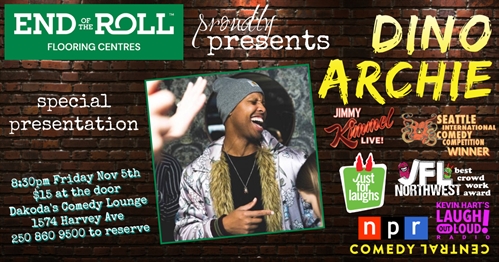 End of the Roll Flooring Centres is excited to present Dino Archie at Dakoda’s. Dino is a full time touring stand-up comedian from Fresno California. Dino honed his skills on the West Coast, in clubs between Los Angeles and Vancouver Canada. Dino was the winner of the Seattle’s 36th Annual International Comedy competition. He has appeared on Season 3 of Adam Devine’s “House Party” on Comedy Central, and followed up with his network late night debut on Jimmy Kimmel Live. Archie has performed at Just for Laughs New Faces and won the Best Crowd-work award at the JFL Northwest Fest.Thank you so much to our generous sponsor, End of the Roll. Their support is what makes this show possible.