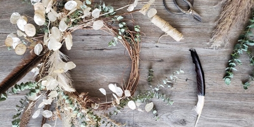Perfect to add color and texture to your home and a wonderful way to welcome the start of a new season. In this class, students will learn techniques to create their own wreath in a natural whimsical design.Using traditional, natural materials, including feathers, foliage and other decorating accessories, this is the time to get creative and customize your own unique Fall décor. Tickets are $60 a student and include all supplies, use of tools, instructions and a glass of wine!