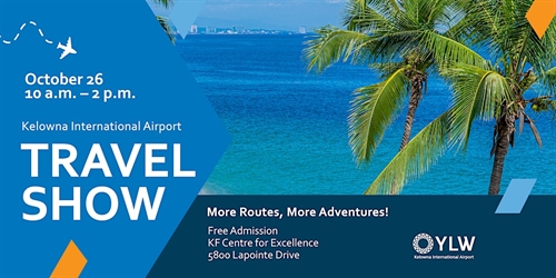 <p>Join YLW at the Fall Travel Show to discover your next adventure! <br /> This Saturday, October 26, from 10 a.m. – 2 p.m., the 2024 Kelowna International Airport (YLW) Fall Travel Show will open its doors at the KF Centre for Excellence, located at 5800 Lapointe Drive. <br /> Get ready for an exciting free event featuring a variety of travel vendors! Meet travel agents, airlines, hotels, and hospitality experts who will share the latest travel tips and trends. <br /> Plus, attendees can win amazing prizes and discover new places to explore from YLW this winter, including newly expanded routes and direct flights to Seattle, Los Angeles and sun destinations. Don’t miss out on the fun! <br /> “We’ve added new destinations and expanded flight options—making it easier than ever to experience incredible cities, cultures, and landscapes from YLW,” said Sam Samaddar, Kelowna International Airport, Chief Executive Officer. “The travel show is a great free event for Okanagan residents to connect with local travel experts to help plan their next getaway.” <br /> Raffle tickets for the prize draws are $5 each or $20 for five tickets and will only be available at the event. <br />• A trip for two to Los Angeles, including round trip airfare, hotel, taxes and a hop on and off sightseeing pass. <br />• A seven-day trip for two to Puerto Vallarta, including a seven-day stay at an all-inclusive hotel, transfers, taxes and round-trip airfare. <br />• Airfare for two from Kelowna to anywhere Air North flies. <br /> Raffle proceeds from the event will benefit the YLW Scholarship Fund, supporting aviation and aerospace students conducting their studies in the Okanagan region. <br /> Free parking will be available at YLW, and shuttles will be provided to transport attendees to the KF Centre for Excellence. Please follow signage and staff direction. Attendees are encouraged to consider other forms of transportation, such as carpooling or public transit</p>