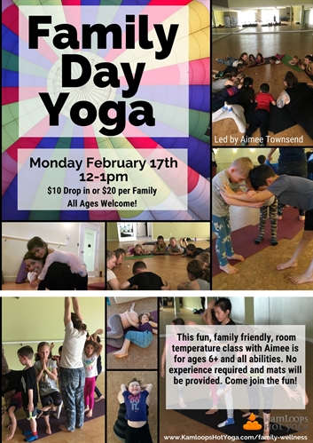 This fun, family friendly, room temperature class with Aimee is for ages 6+ and all abilities. No experience required and mats will be provided. Come join the fun!