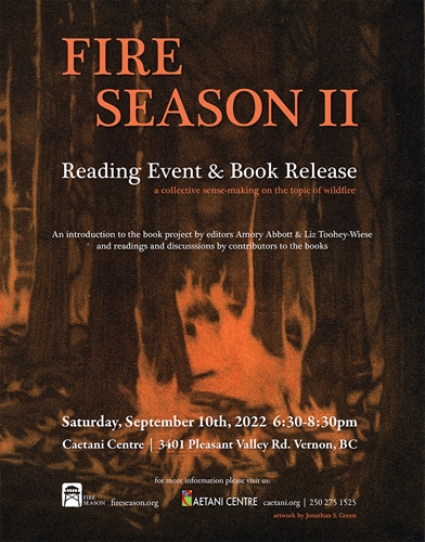 On Saturday, September 10, from 6:30-8:30 pm, former Caetani House artist-in-residence Liz Toohey-Wiese will return to the Caetani House to launch her new book, Fire Season II. There will be a reception along with the book launch. The book launch and reception will take place in the Caetani gallery. Liz founded Fire Season in 2019 with Amory Abbott to create an artist book that explores how wildfires impact people and communities through visual art and writing. At the book launch, Liz will be reading and discussing work from Fire Season II with Amory and other contributing artists. Copies of both volumes of Fire Season will be available for purchase at the book launch. To learn more about Liz’s Fire Season book project, visit fireseason.org.