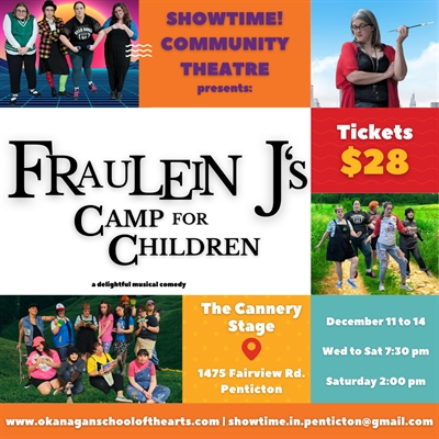 Fraulein J’s Camp for Children will run from December 11–14 on the Many Hats Theatre stage at the Cannery Trade Centre in Penticton. This delightful musical comedy weaves together energetic choreography and a variety of musical genres. Audiences will enjoy a toe-tapping tune from Chitty Chitty Bang Bang, a whimsical melody from Seussical, the timeless compositions of Stephen Sondheim, and original songs composed exclusively for this production.