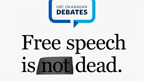 <p>This new UBC Okanagan Debates series brings together UBC experts and thought leaders to debate complex and timely topics facing society. The series is designed to model civil discourse in a polarized world. <br />This October, we examine free speech in an increasingly complex and discordant digital era. <br />Have secretive social media algorithms choked off free speech and confined it within echo chambers? Or is the digital age supercharging free speech, granting anyone with an internet connection the power to express and influence? Is free speech dead or more alive than ever? <br />We invite you to challenge your perspective and join us in person Tuesday, October 24 from 7:00pm to 8:30pm, where the forward thinkers considering these questions will engage in a spirited debate that promises to challenge assumptions, provoke thought, and potentially reshape your understanding of the future of free speech.</p>