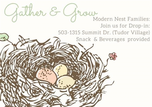 Open to all Modern Nest Families! Join us for our monthly casual drop-in. Connect with other young families in the community . Snacks & Coffee/Tea provided.